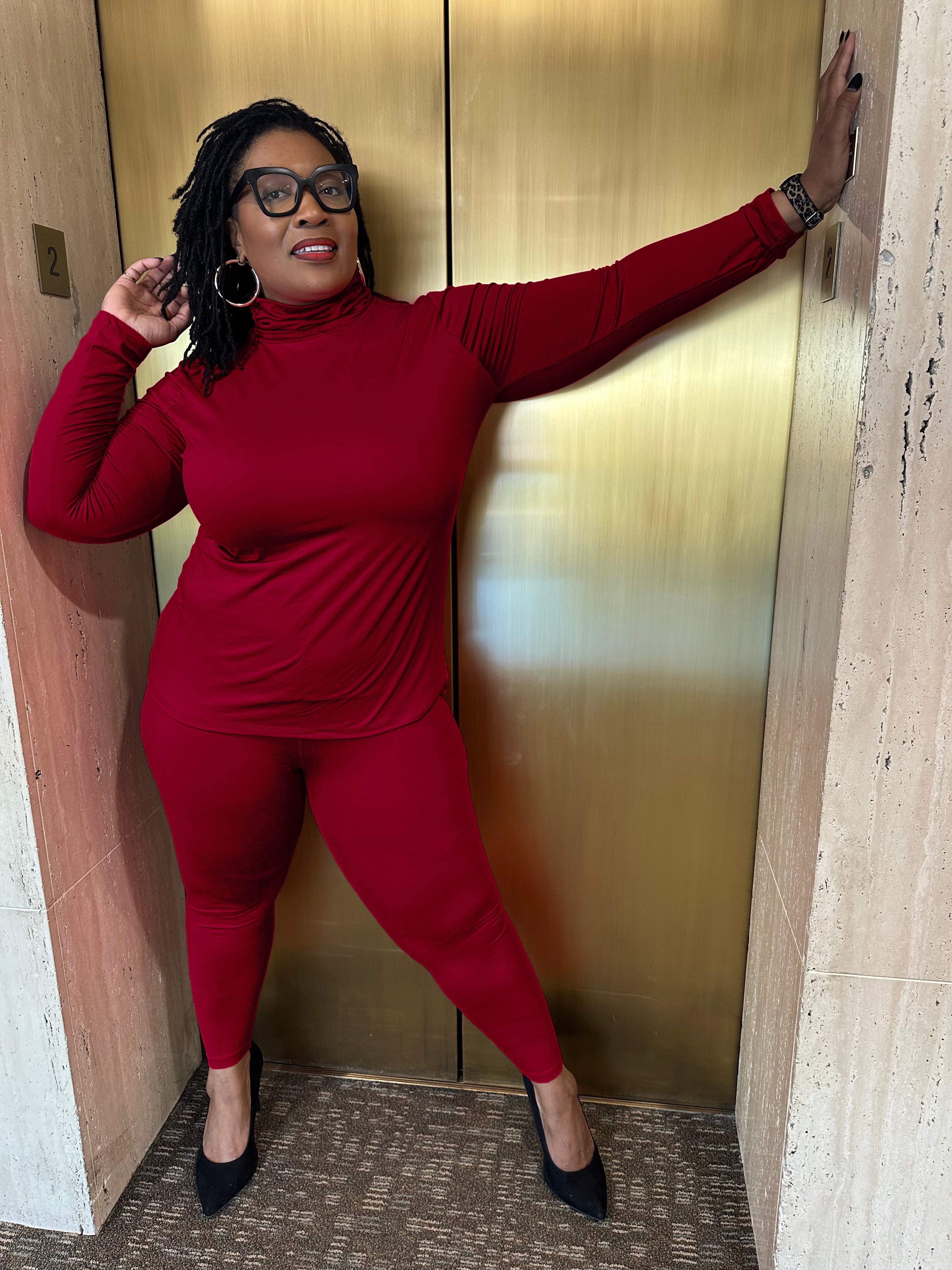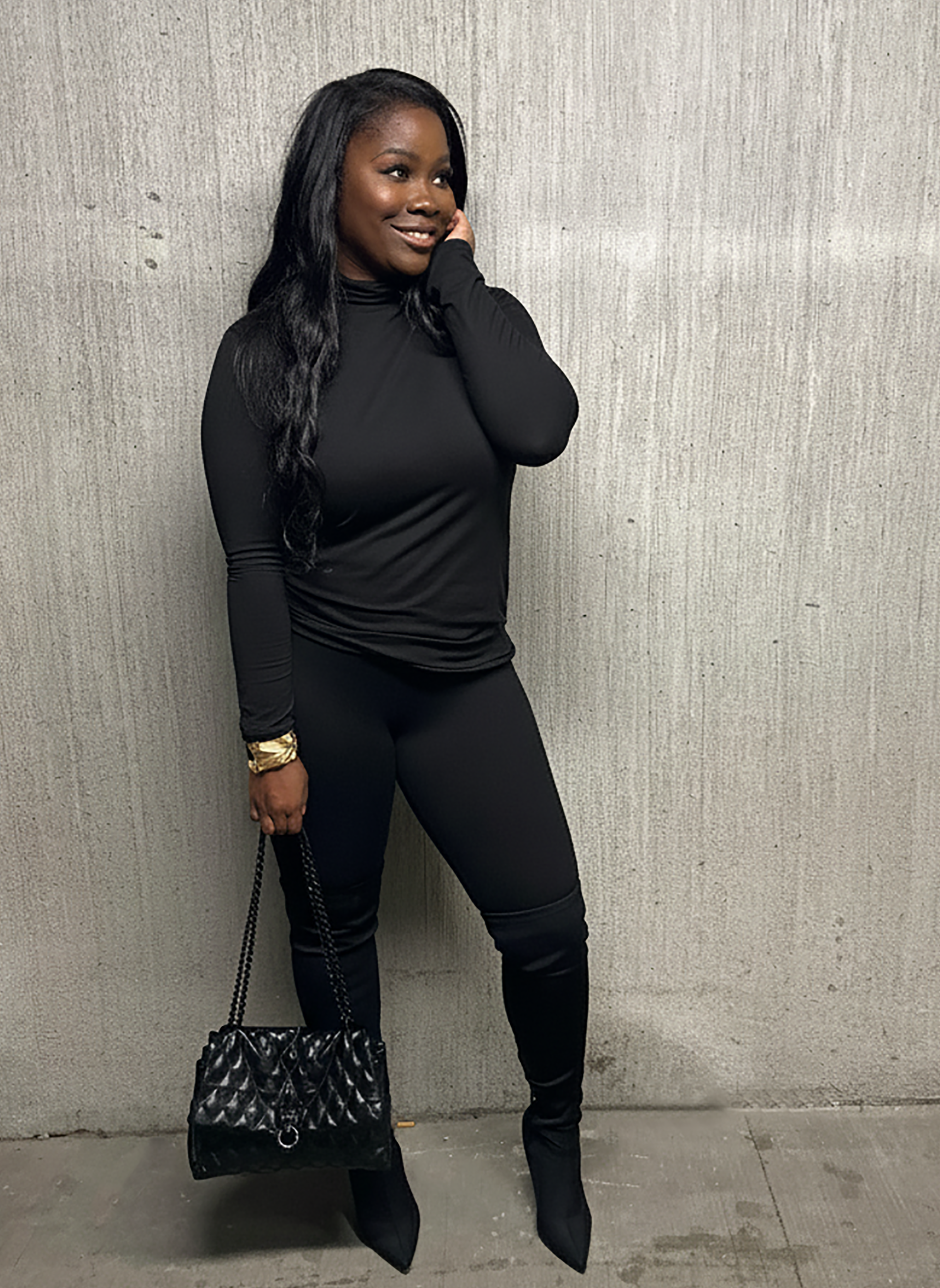 The model is gorgeous and the set is perfect! I love wearing this and dressing it up or down.